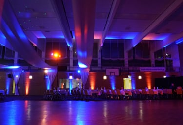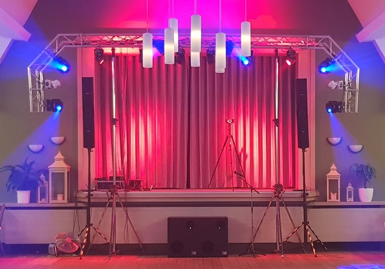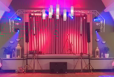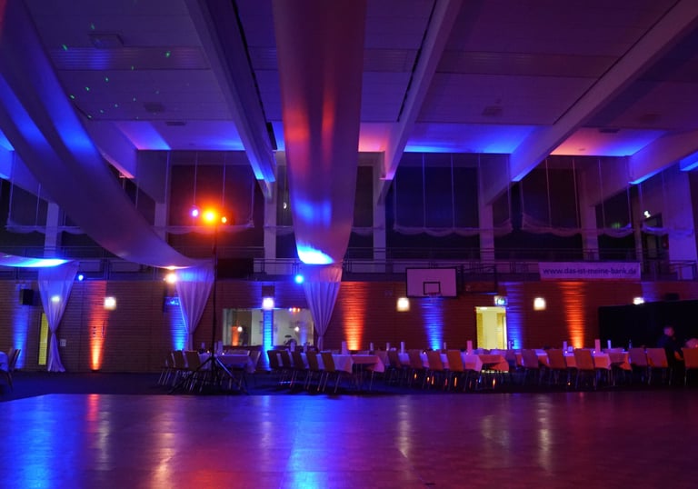 Ambientebeleuchtung taucht Ihre Location in ein neues Licht und wirkt bei jedem Anlass einfach harmonisch. Mit Vorhängen in verschiedenen Farben können wir außerdem zu jedem Anlass einen perfekten Hintergrund herbeizaubern.