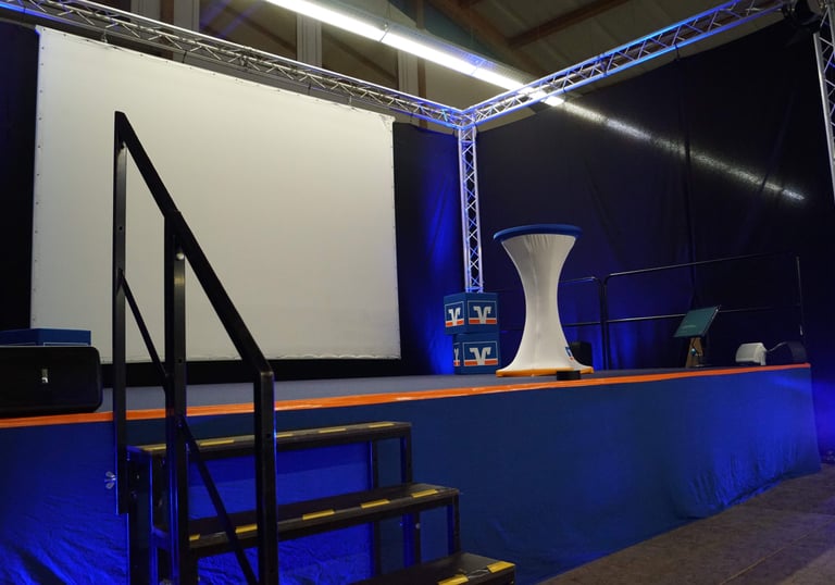 Klassische Messestände, umbaute Auftrittsflächen im Freien oder die Herstellung einer kompletten Hintergrundkulisse, alles ist möglich.